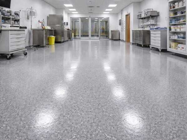 While high-gloss finishes can be slick when wet, we can add specialized anti-slip aggregates to the final coat to ensure a safe and slip-resistant texture for your facility.
